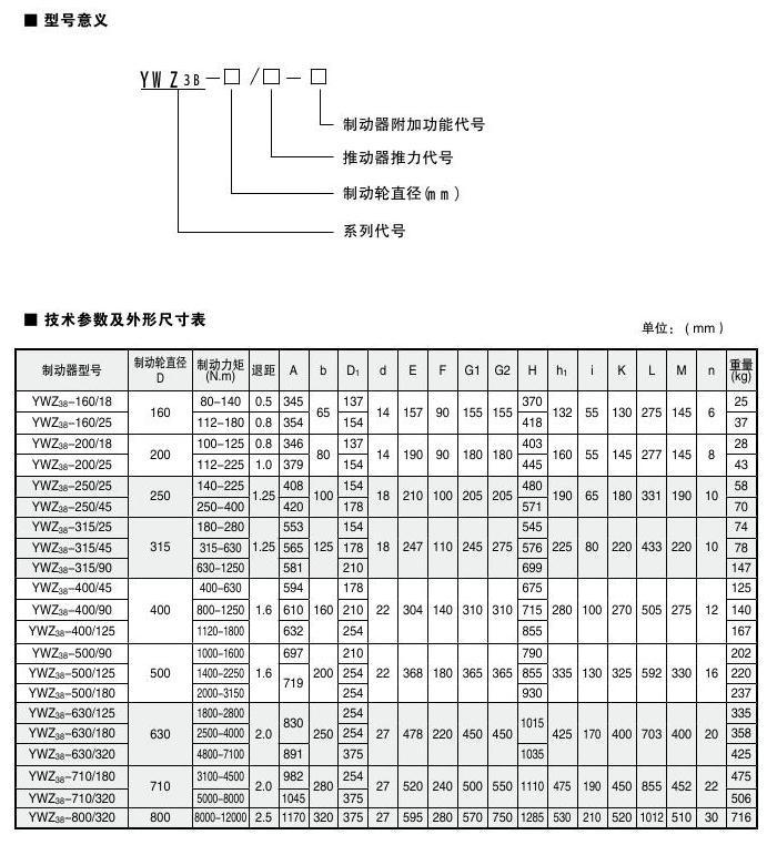 ● 產(chǎn)品型號:YWZ3B-160、YWZ3B-200、YWZ3B-250、YWZ3B-315、YWZ3B-400、YWZ3B-500、YWZ3B-630、YWZ3B-710、YWZ3B-800