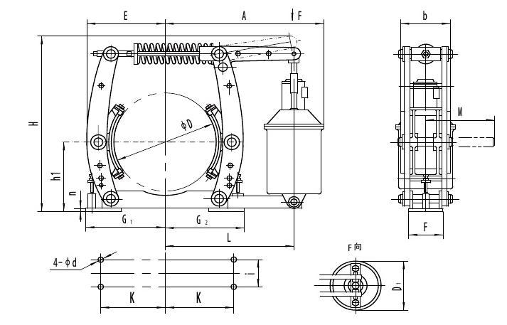 YWZ3B系列電力液壓鼓式制動器的連接尺寸和制動力矩參數(shù)符合GB6333-86標準,技術要求符合JB / T6406-2006標準,  本系列取代原YWZ3系列制動器。